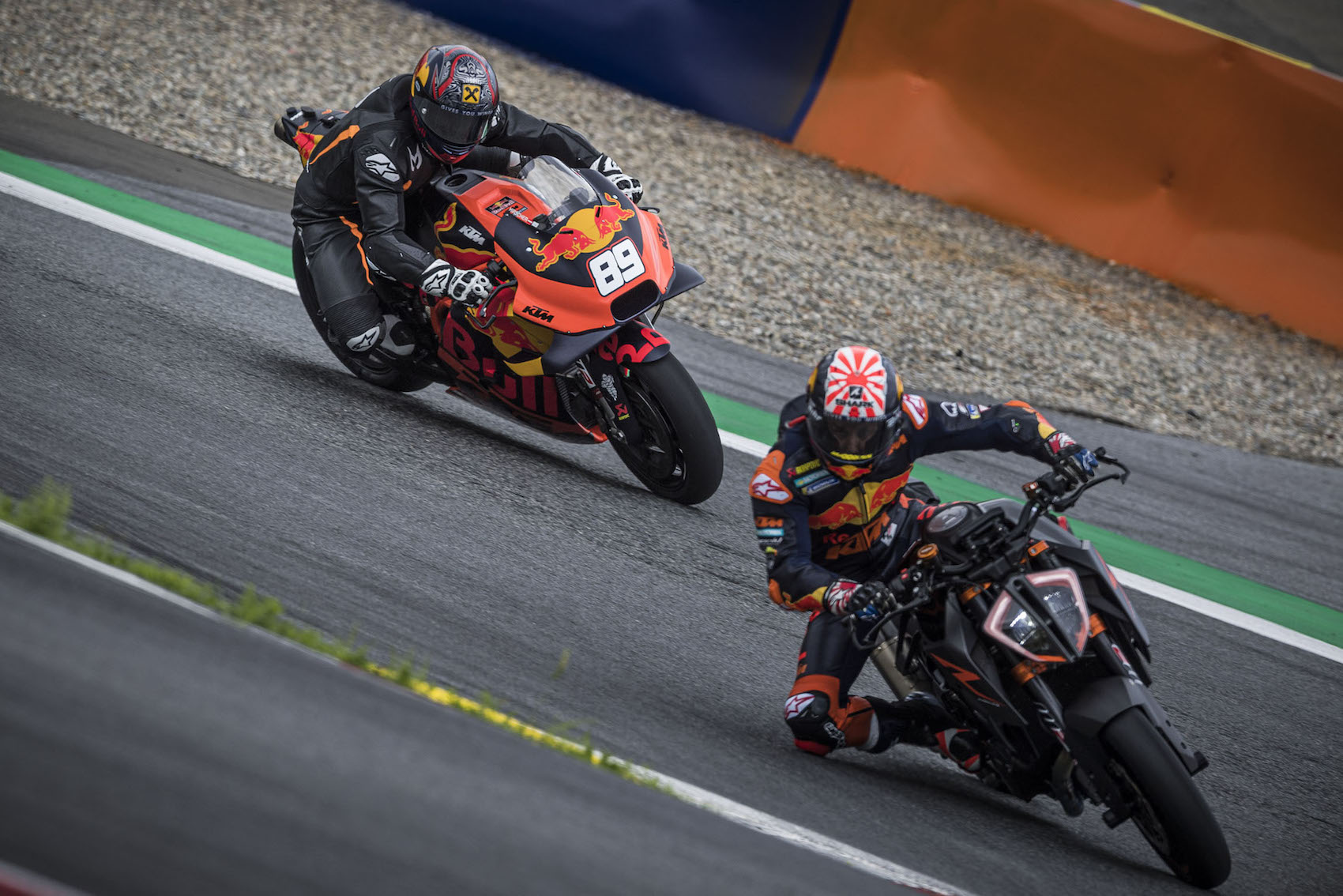Dass Marcel Hirscher auch passionierter Motorsportler ist, ist bekannt. Der Salzburger war bereits mehrmals bei Formel 1 und Motorrad Grands Prix am Spielberg zu Gast, steigt regelmäßig auf die Motocross-Maschine, und hat auch schon auf dem Red Bull Ring Gas gegeben; wie zum Beispiel am DTM-Wochenende 2015 im Cockpit des Audi Sport TT Cup. Jetzt aber wagte sich der österreichische Alpin-Ski-Star – nach einem „Herantasten“ mit einem Moto2- Bike – auf das unangefochten heißeste Terrain im Zweirad-Rennsport. Er nahm die Herausforderung eines MotoGP- Rennbikes – der KTM RC16 von Red Bull KTM Factory Racing – an und heizte mit dieser Rakete auf zwei Rädern, die normalerweise nur von absoluten Profis im Zaum gehalten werden kann, über die Grand-Prix-Strecke. Ihm dabei unter die Arme gegriffen hat unter anderen die Motorrad-Ikone Gustl Auinger. Auf dem Track mit dabei war der KTM-Pilot Johann Zarco, dem die Cover-Story der aktuellen „The Red Bulletin“ gewidmet ist, und ein Motorrad-Instruktor des Red Bull Ring.