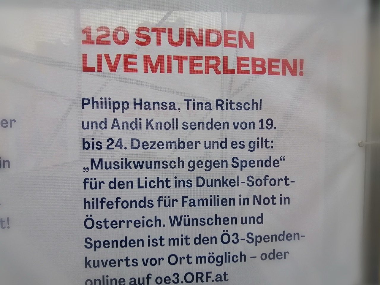 Ob live und direkt vor der Ö3-Wunschhütte oder in ganz Österreich im Radio – ab 19. Dezember um 10.00 Uhr heißt es dann auf Ö3 wieder: „Sie spenden, wir senden!“
